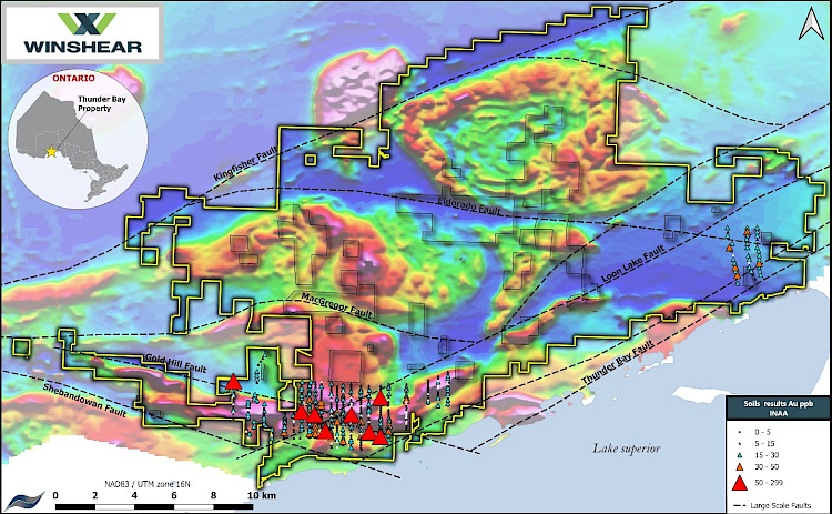 Winshear Metals (TSX-V: WINS, FRA: 9HR) herein reports results from the 2025 follow-up soil sampling program over the 360km2 Thunder Bay Project, Ontario, which has identified several large gold targets.